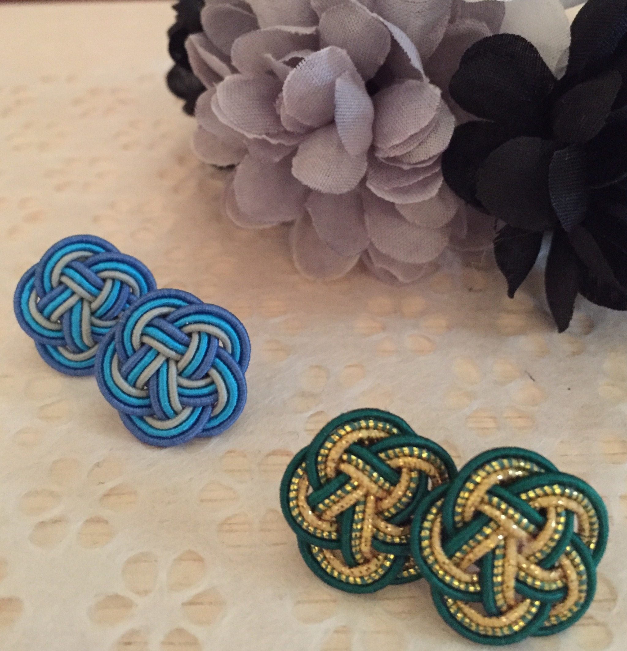 三重の梅結びでピアスを仕上げてみました。